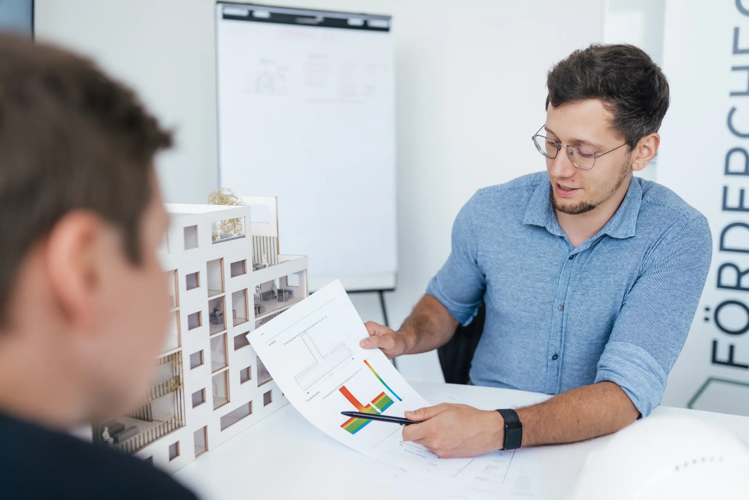 Mit unserem erfahrenen Team von Experten in ihren jeweiligen Fachbereichen stellen wir sicher, dass Sie alle benötigten Leistungen aus einer Hand erhalten. Von der detaillierten Prüfung Ihres Bauvorhabens über die Berechnung der Fördermöglichkeiten bis hin zur Unterstützung bei der Beantragung und Umsetzung - wir sind Ihr verlässlicher Partner.
